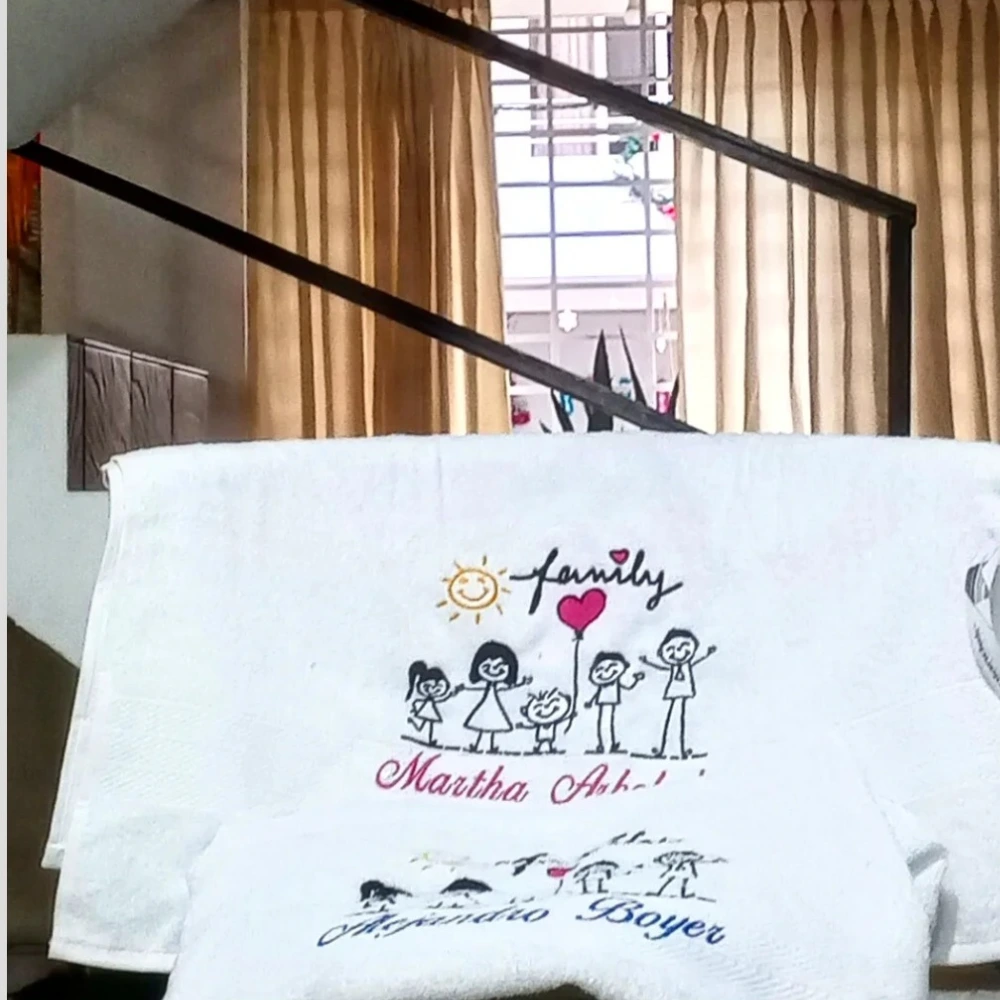 Toalla blanca de alta calidad, suave y absorbente, personalizada con nombre bordado en hilo resistente. Un detalle elegante y funcional, ideal para uso diario o como regalo especial.
